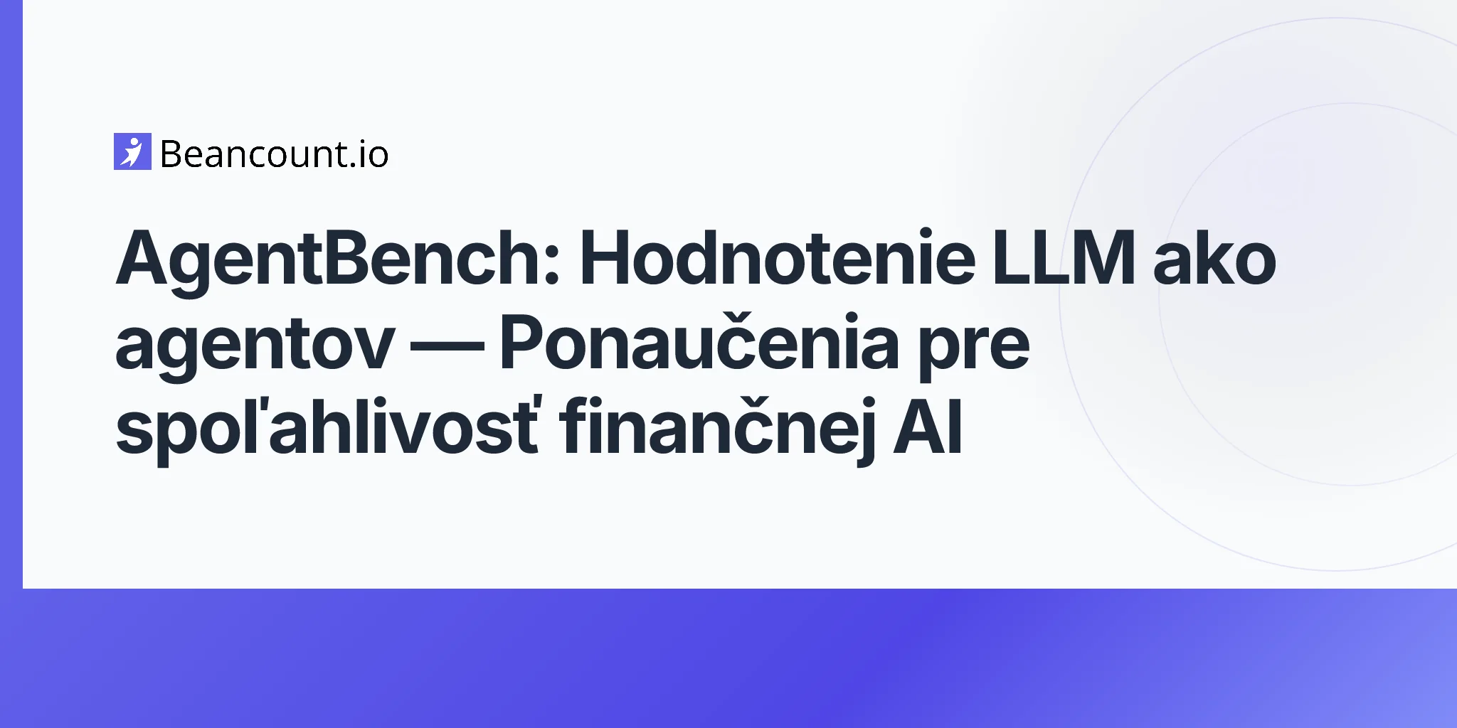 AgentBench (Liu et al., ICLR 2024) benchmarkuje 27 LLM v 8 interaktívnych prostrediach — GPT-4 dosiahol celkové skóre 4,01 oproti 0,96 pri najlepšom open-source modeli. Tri dominantné chybové režimy (prekročenie limitu úloh pri 67,9 % zlyhaní vedomostného grafu, chyby formátu pri 53,3 % zlyhaní databáz a neplatné akcie) priamo zodpovedajú rizikám nasadenia Beancount write-back agenta na reálnu účtovnú knihu.